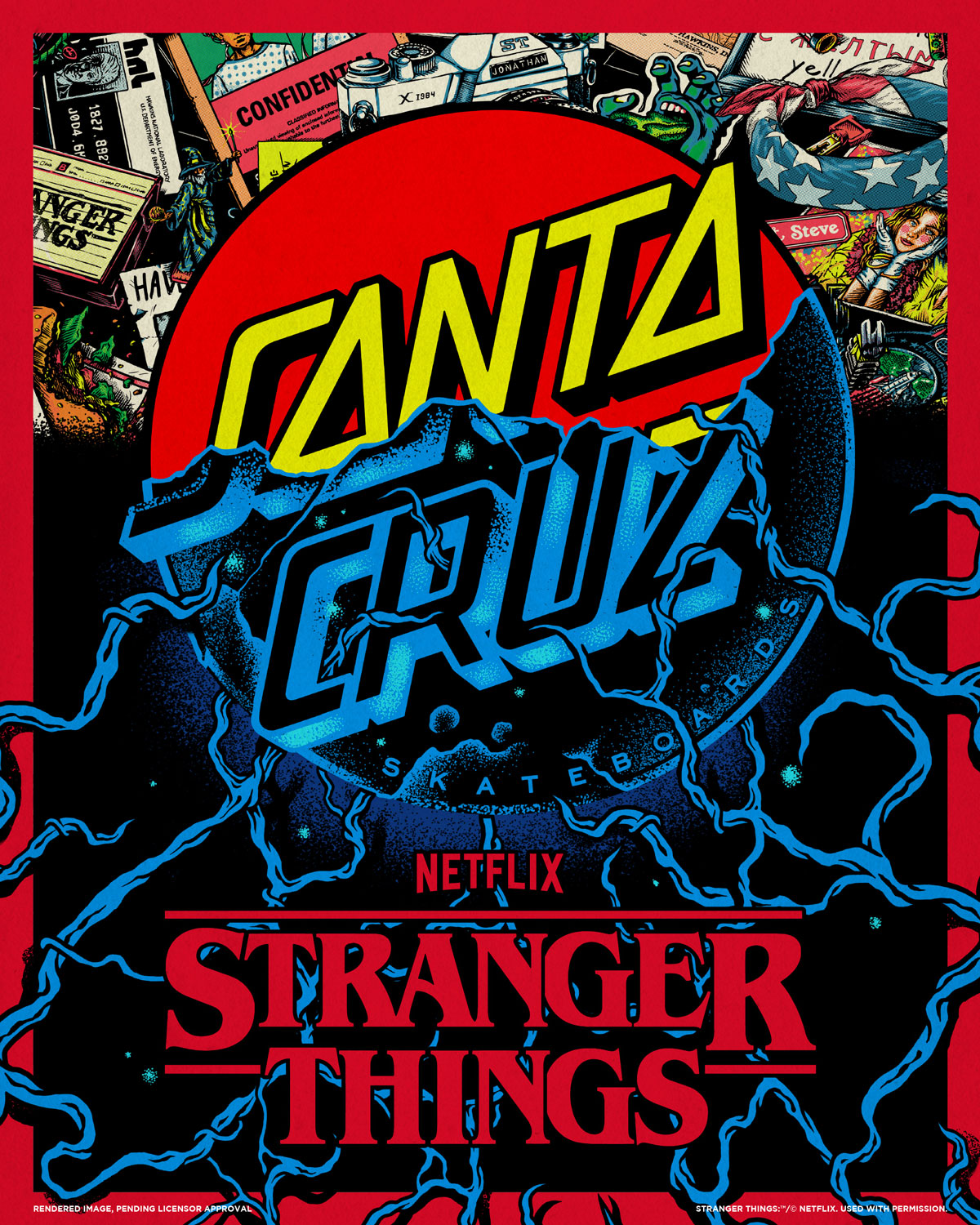 Something Strange is happening in Santa Cruz and it’s bursting out of us like a demogorgon in the upside down. We are stoked to share with you the STRANGER THINGS x SANTA CRUZ collection coming July 25th 2022. We will be offering a full line of decks, reissues, cruisers and completes as well as Krux Trucks, Slime Balls wheels and Mob Grip.